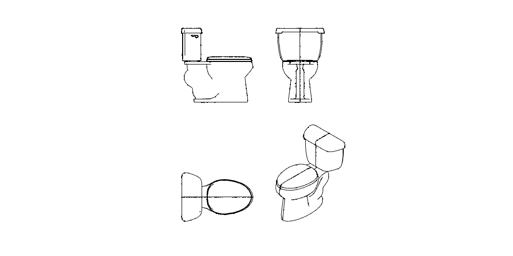 Download this free standard toilet dwg for your bathroom floor plans and elevations. This 2D CAD drawing shows a classic two-piece toilet, making it easy to detail your residential or commercial plumbing layouts.
