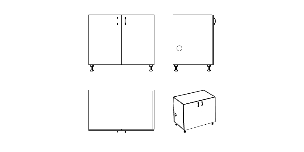 Download this free storage cabinet dwg for your interior floor plans and elevations. This 2D CAD drawing shows a standard base cabinet with legs and doors, ready to use in your daily drafting work.